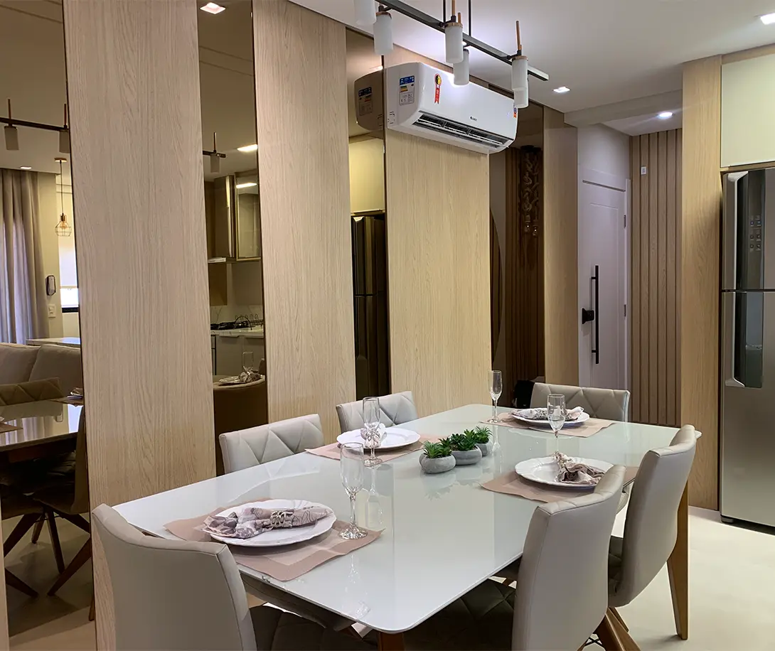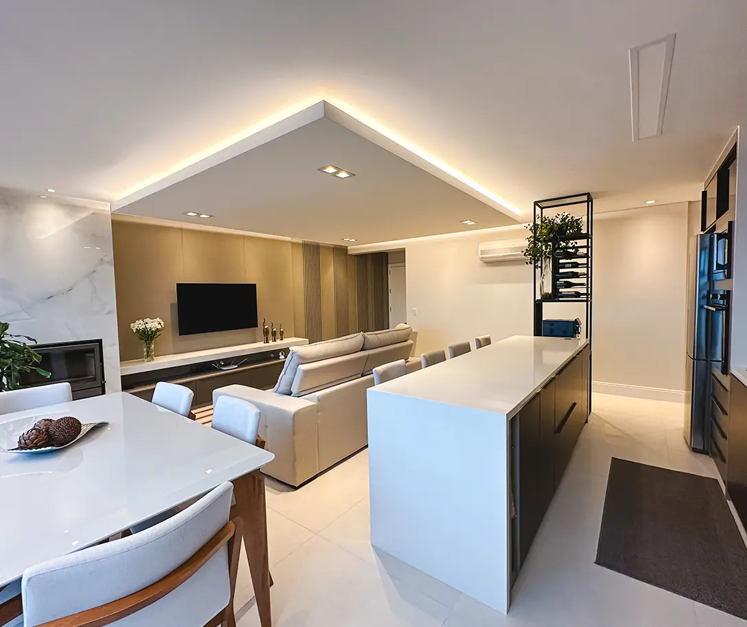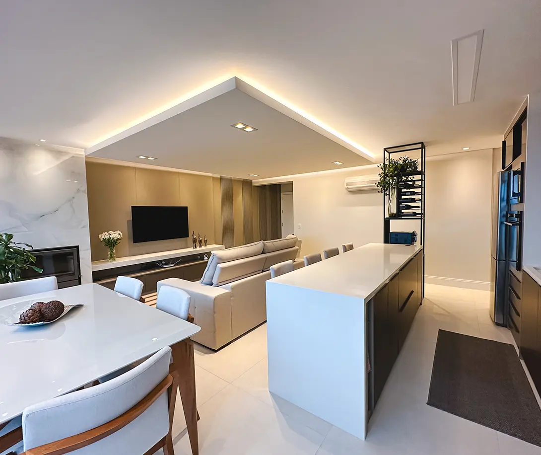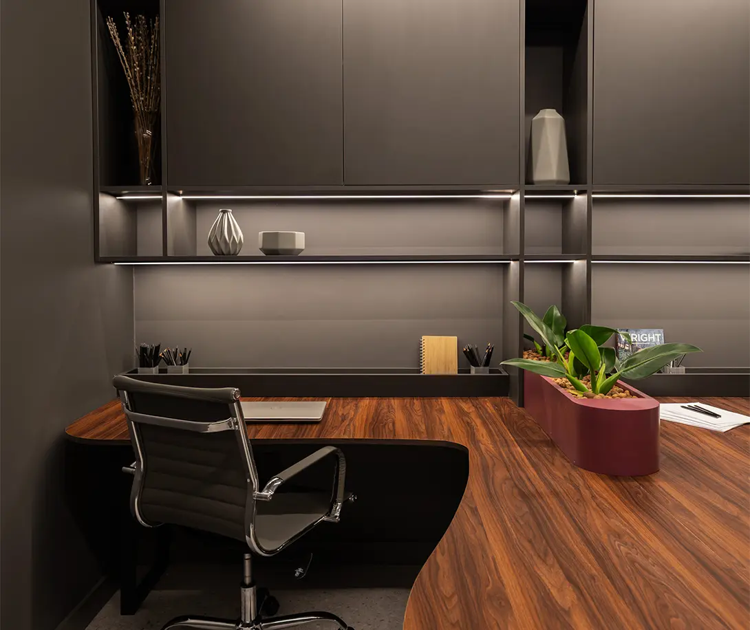 Independentemente do tamanho do espaço, a concepção de móveis personalizados atende às especificidades de cada projeto, proporcionando eficiência funcional e estética. Adaptamo-nos ao estilo de vida contemporâneo, criando ambientes flexíveis que podem ser integrados ou isolados, refletindo a funcionalidade e adaptabilidade necessárias para atender às evoluções constantes das necessidades dos clientes.